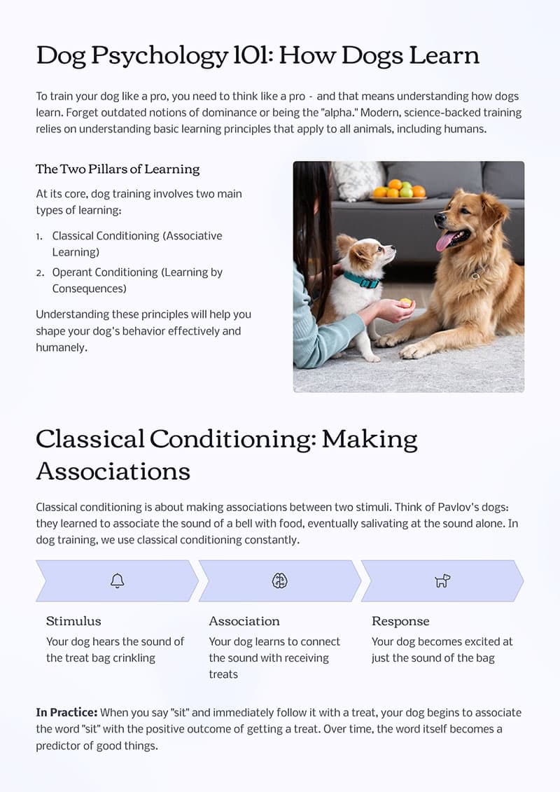 Training isn’t a one-size-fits-all approach. This guide helps you adapt techniques to your dog’s age, breed, temperament, and past experiences.